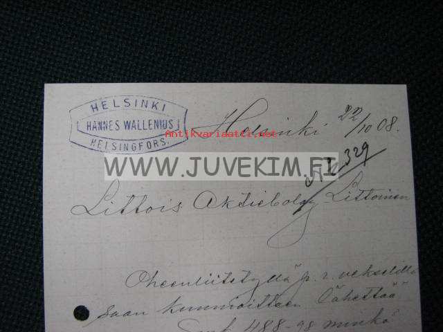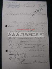 Hannes Wallenius, Helsinki 22.10.1908 -asiakirja