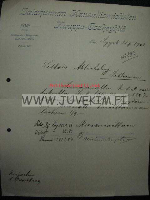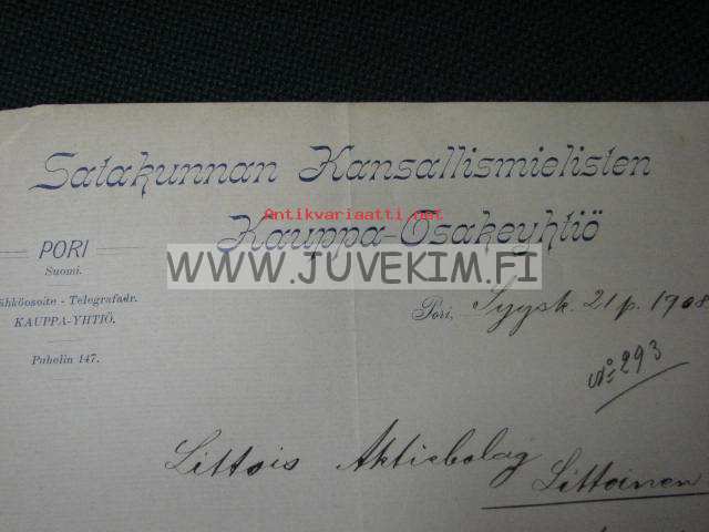 Satakunnan Kansallismielisten Kauppa-osakeyhtiö, Pori, 21.9.1908 -asiakirja