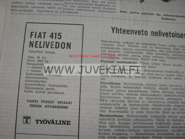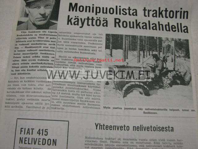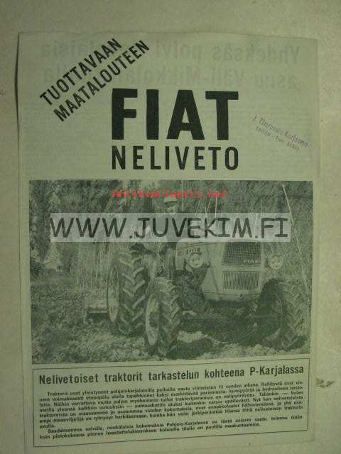Fiat nelivetotraktori tuottavaan maatalouteen -myyntiesite (Nevalainen, Juuka, Väli-Mikkolan tila; Toropainen, Kitee, Säynejärvi; Saukkonen, Liperi, R