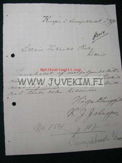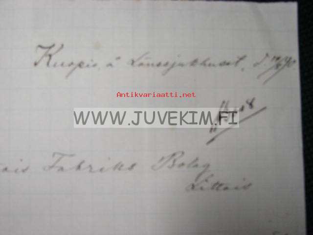 Kuopio Länssjukhuset (Lääninsairaala) 14.8.1890 dokument, asiakirja