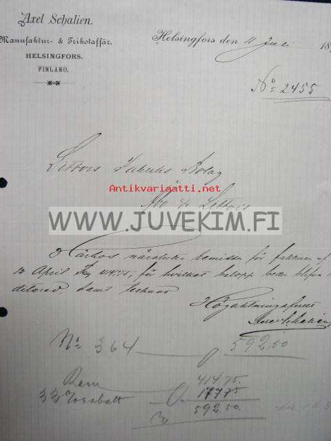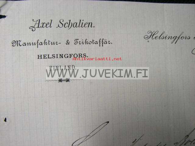 Axel Schalien Helsingfors / Helsinki 11.7.1890 -dokument, asiakirja