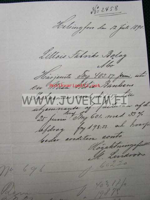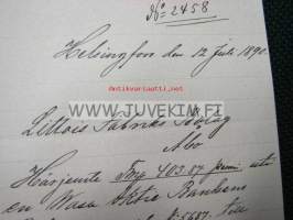 Helsingfors (Helsinki) 12.7.1890 -dokument, asiakirja