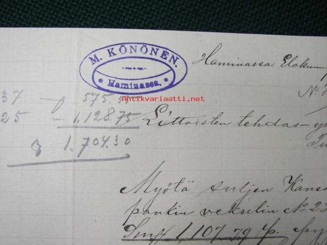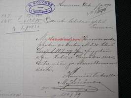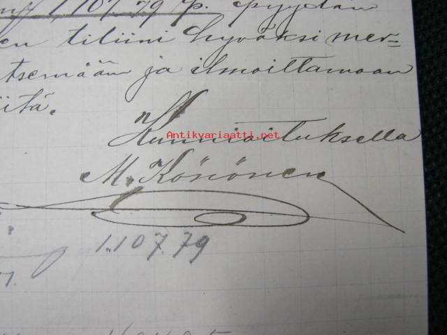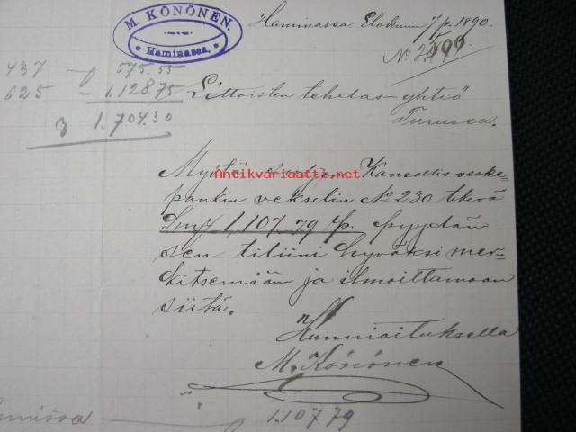 A.Könönen, Hamina, 7.8.1890 -asiakirja