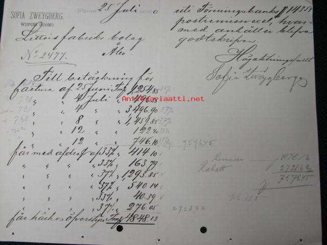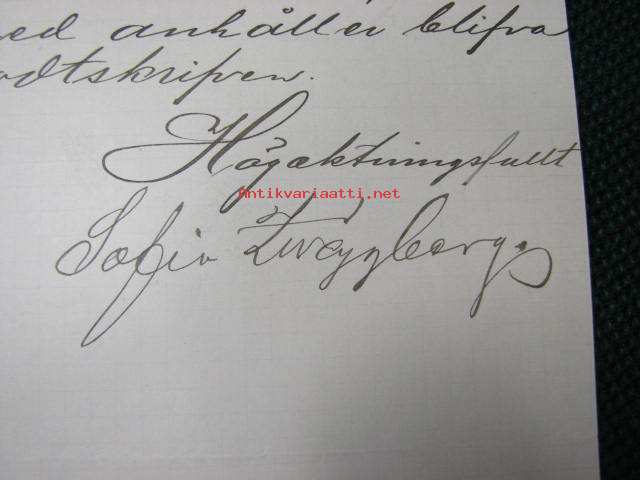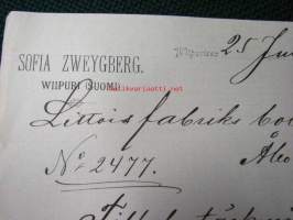 Sofia Zweygberg , Wiborg, (Viipuri) 25.7.1890 -asiakirja, dokument