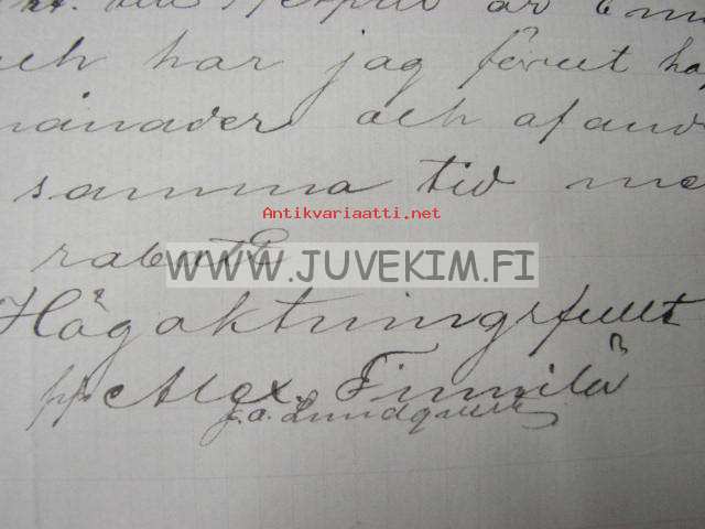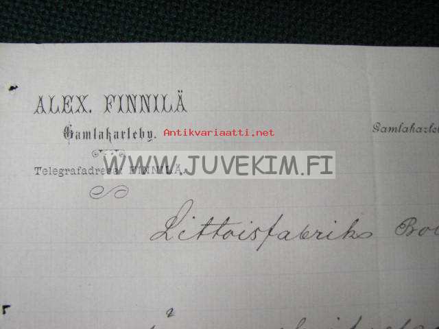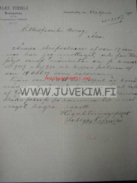 Alex Finnilä Gamlakarleby/Kokkola 28.4.1890 -asiakirja