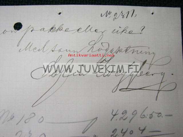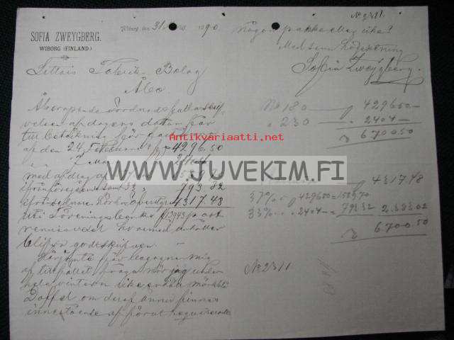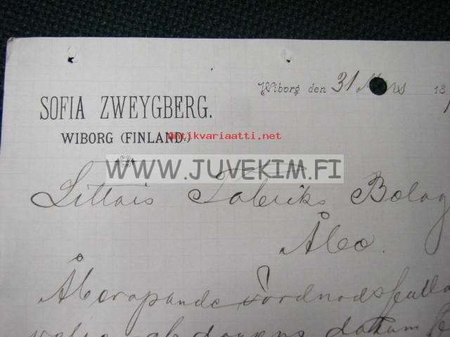 Sofia Zweygberg Wiipuri 31.3.1890 -asiakirja