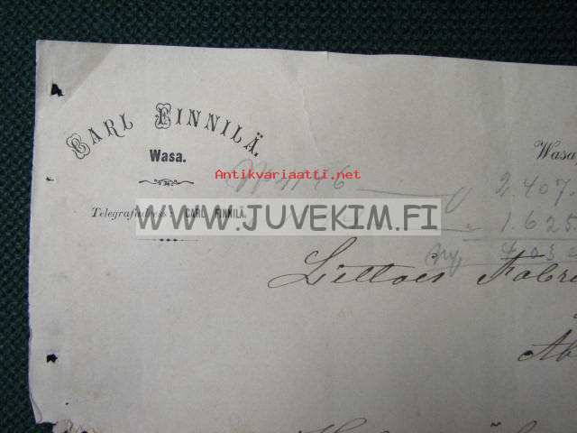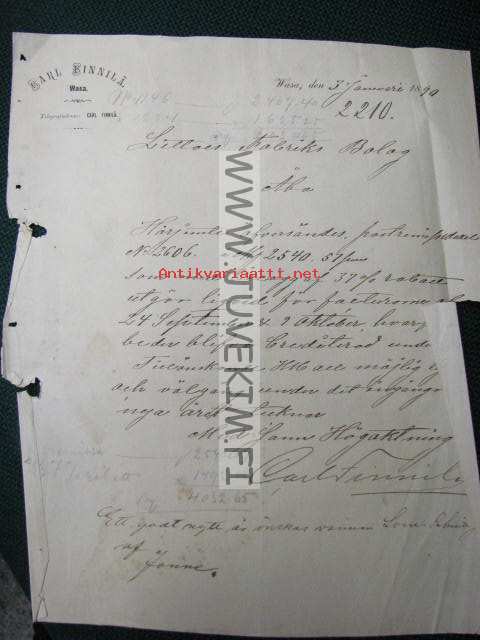 Carl Finnilä Aktiebolag Gamlakarleby/Kokkola 3.1.1890