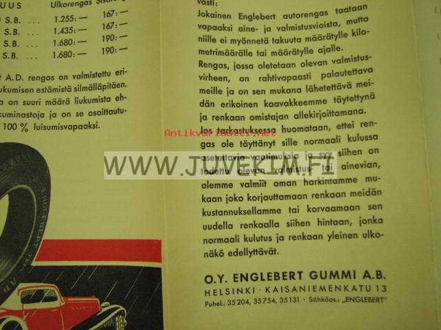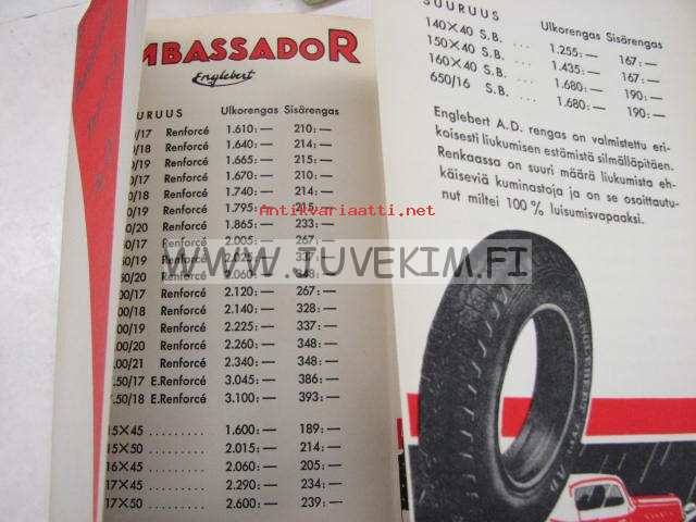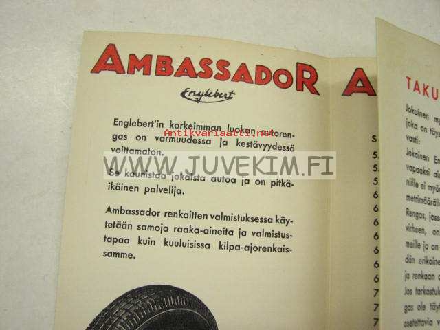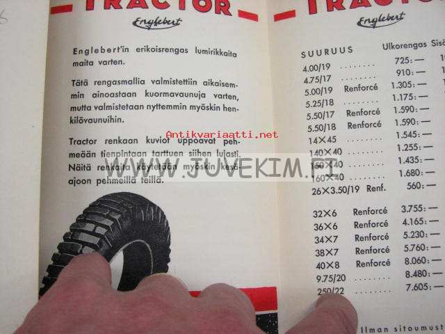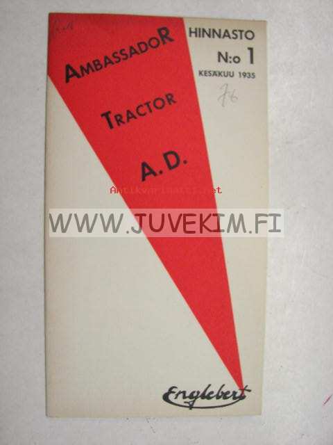 Englebert renkaat Ambassador Tractor A.D. hinnasto nr 1 kesäkuu 1935 -myyntiesite