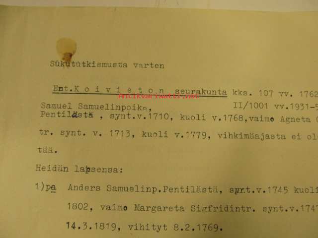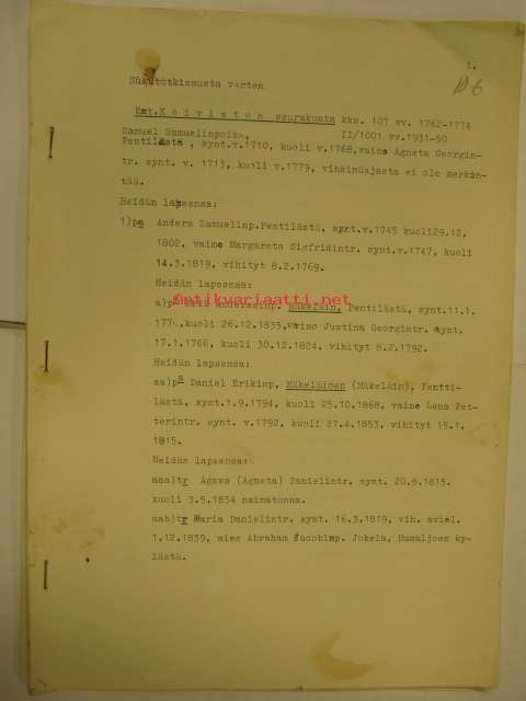 Sukututkimusta varten entinen Koiviston seurakunta kks 107 vv. 1762-1774 Samuel Samuelinpoika, Pentilästä... -19 sivua sukuluetteloita