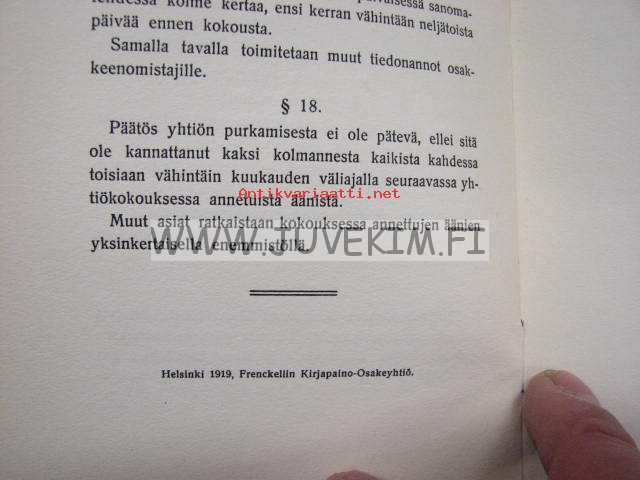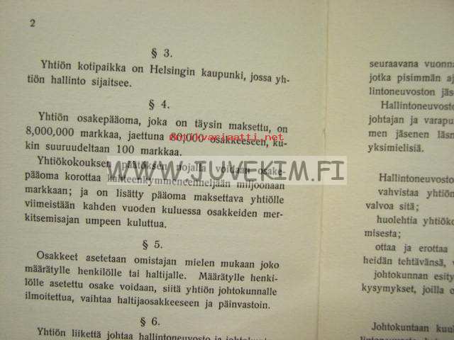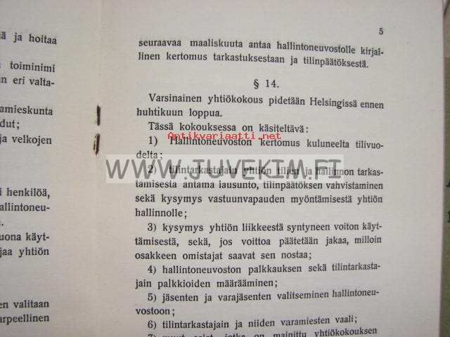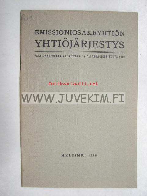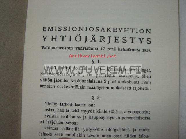 Emissioniosakeyhtiön Yhtiöjärjestys 1919