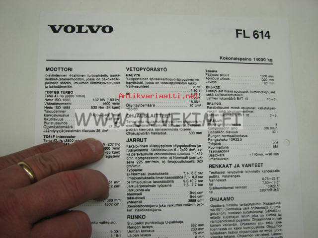 Volvo FL 614 tekniset tiedot -myyntiesite