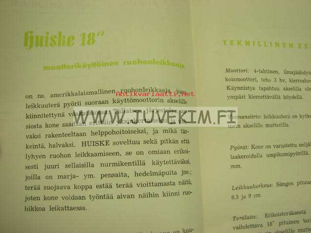 Huiske 18´´ ruohonleikkuri (Clinton-moottori) + Landmaster, Motorobott puutarhajyrsimet esite