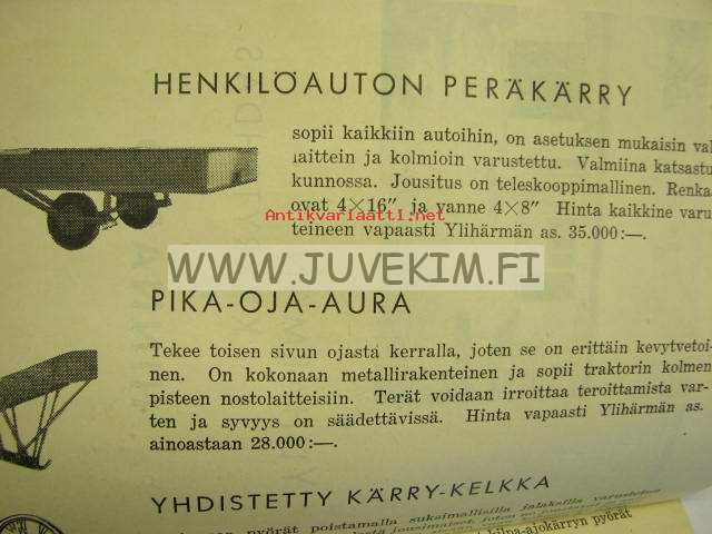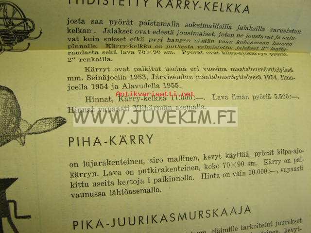 Ylihärmän kärrytehdas, hinnasto -esite