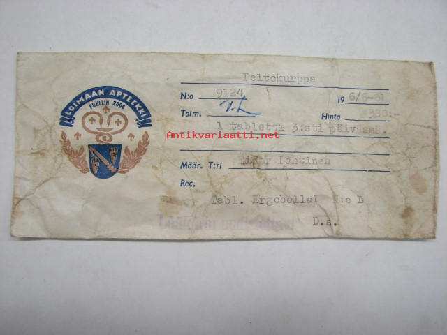 Loimaan Apteekki, 6.6.1961 -apteekkipussi