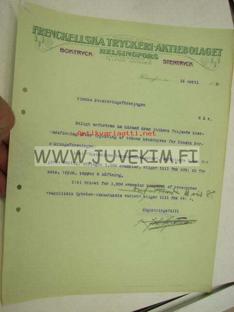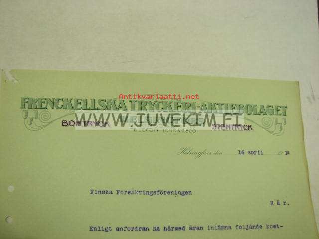 Frenckellska Tryckeri-Aktiebolaget, Helsinki 16.4.1914 -asiakirja