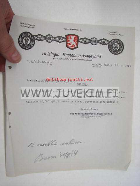 Helsingin Kustannusosakeyhtiö, Helsinki 29.4.1914 -asiakirja