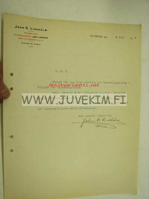 John O. Lindholm, Helsinki 4.6.1914 -asiakirja