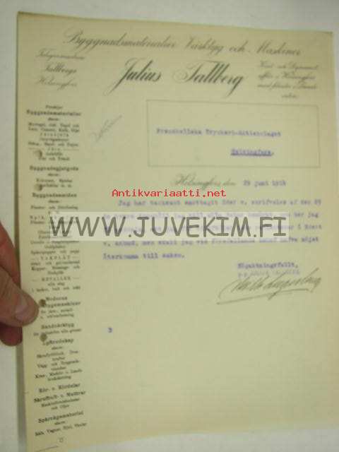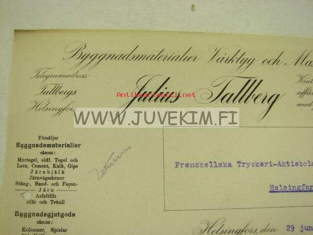 Julius Tallberg, Helsinki 29.6.1914 -asiakirja