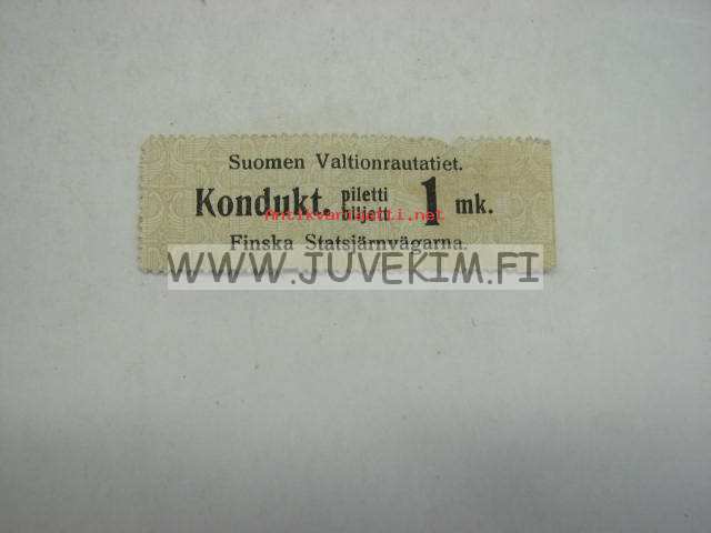 Valtionrautatiet konduktööripiletti 1 mk -matkalippu