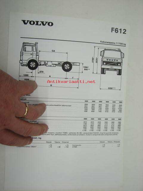 Volvo F612 -tekniset tiedot, esite