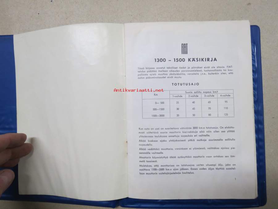 Fiat 1300, 1500 1963 -käyttöohjekirja, alkuperäisessä Autonovo -kansiossa