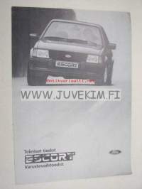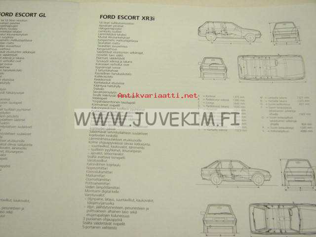 Ford Escort 1985 tekniset tiedot, varustevaihtoehdot -myyntiesite