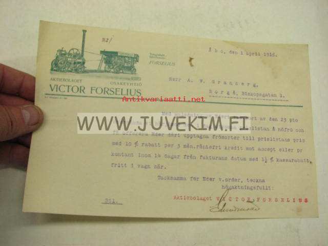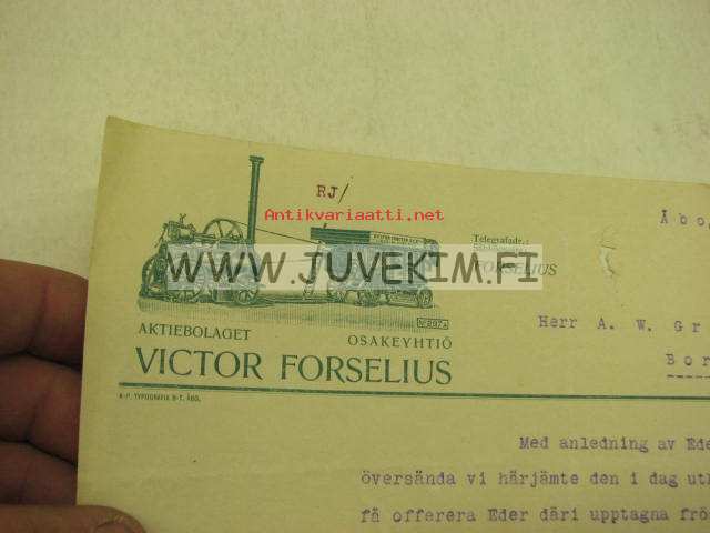Victor Forselius, Turku 1.4.1916 -asiakirja