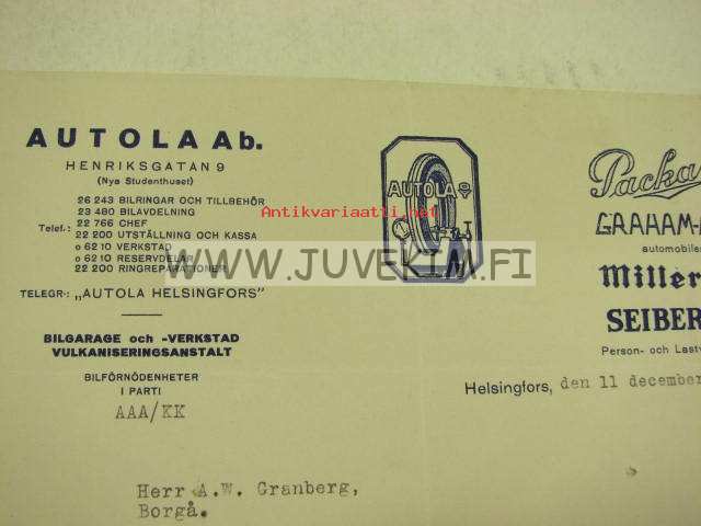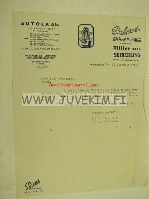 Autola Ab, Helsinki 11.12.1928 -asiakirja