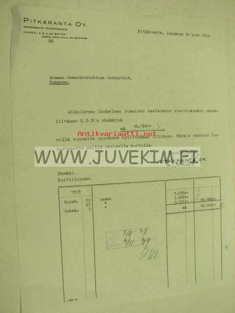 Pitkäranta Oy, Pitkäranta (Nurmisaari), 30.10.1939 -asiakirja