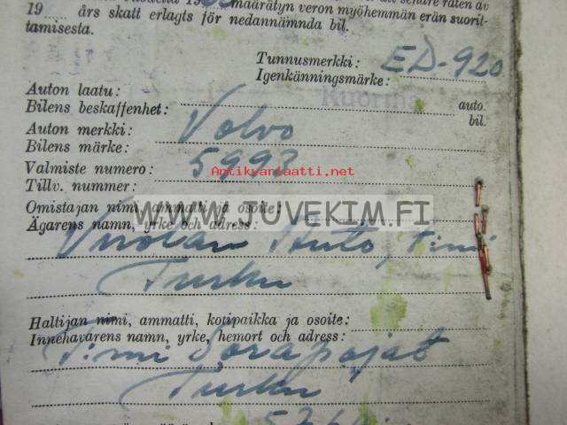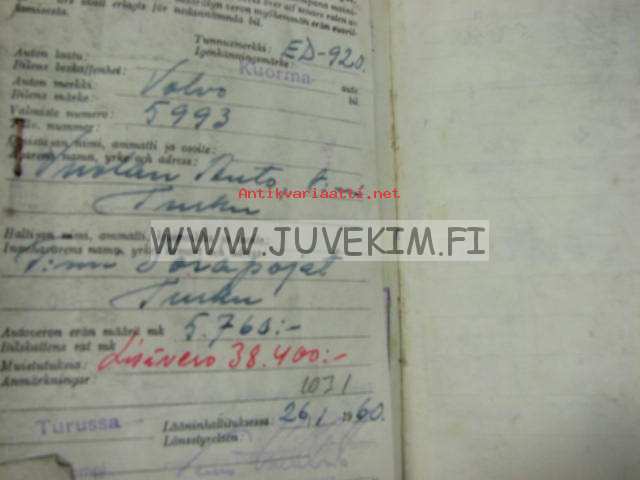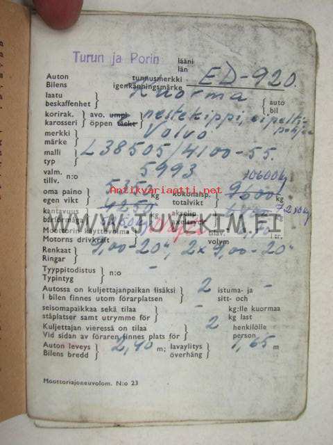 Volvo L38505/4100 vm. 1955 kuorma-auto -rekisteriote