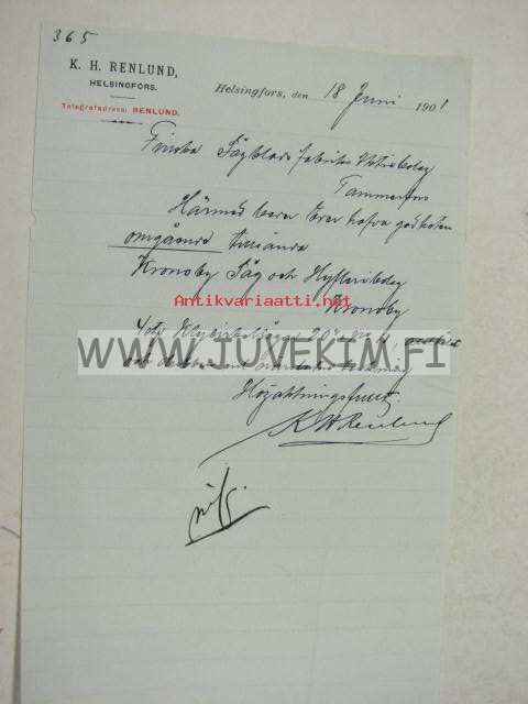 K. H. Renlund, Helsinki 18.6.1901 -asiakirja, allekirjoitus K. H. Renlund