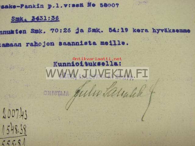 Häkli, Lallukka ja Kumpp Oy, Viipuri 12.10.1908 -asiakirja, omakätinen allekirjoitus Juho Lallukka