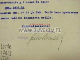 Oleskelulupa takaisinvallatulla alueella, Johanneksen kunnan Kaijalan kylästä, emäntä Maria Hänninen + lapset Heino Olavi - Aino Tellervo - Jouko Tapio, 11.4.1942