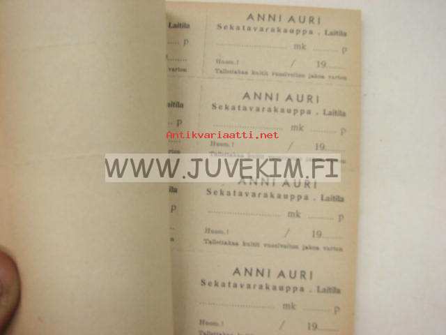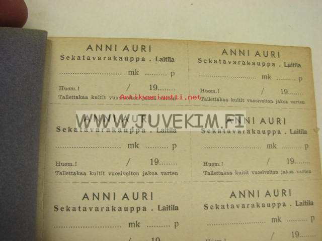 Anni Auri, Sekatavarakauppa, Laitila -ostopalautuskuittivihko
