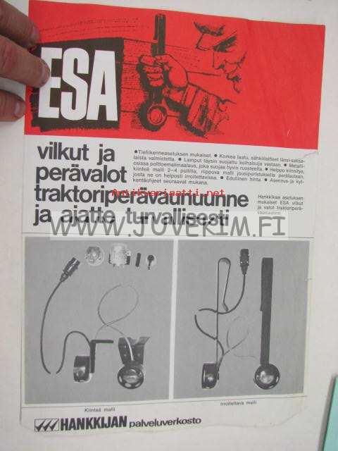Esa vilkut ja perävalot taroktoriperävaunuun -myyntiesite