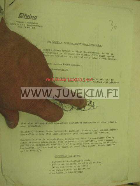 Universal traktorikäyttöinen lumilinko -myyntiesite