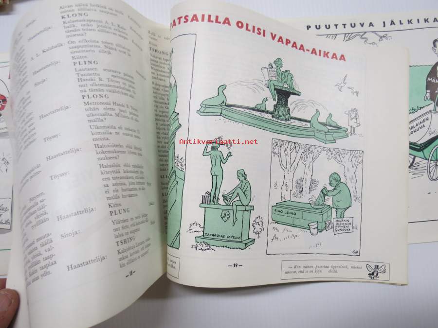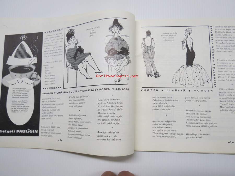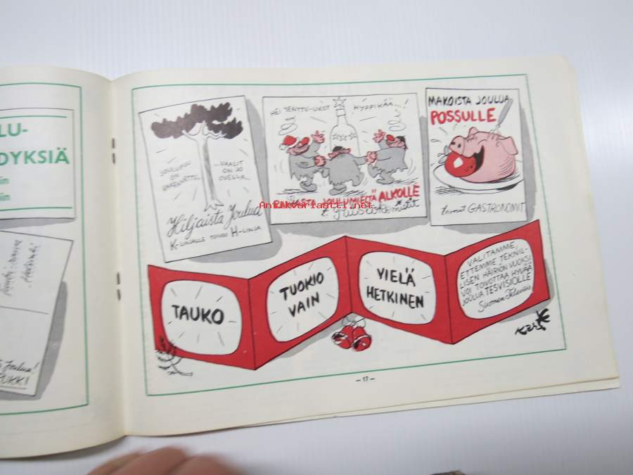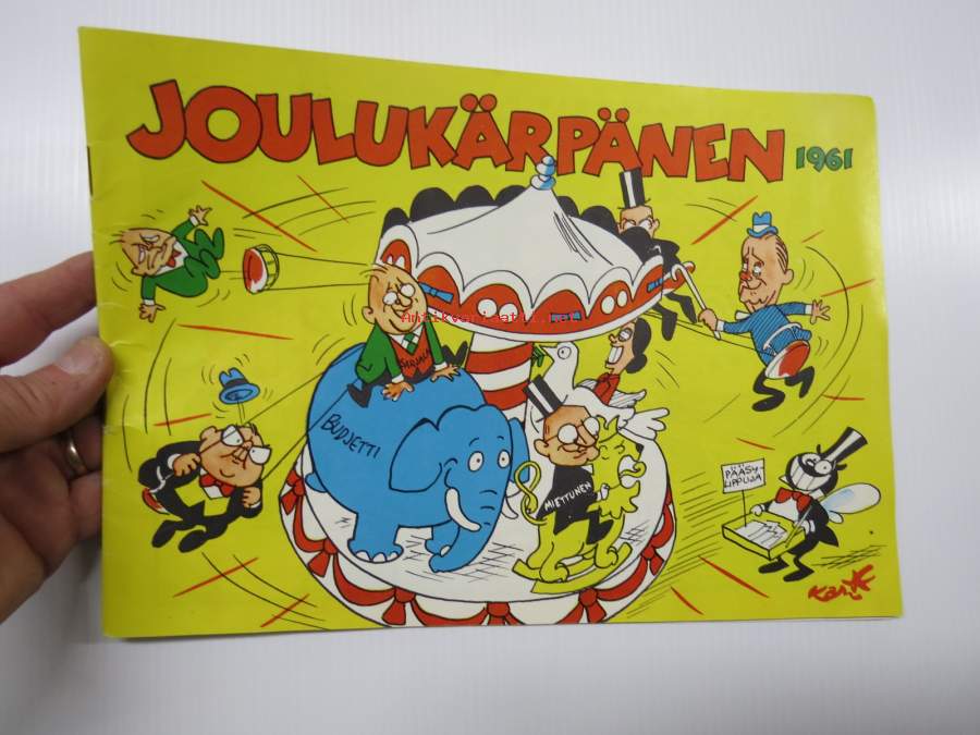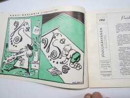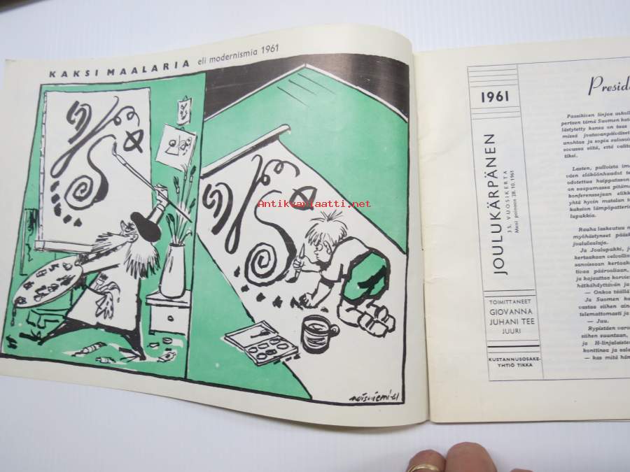 Joulukärpänen 1961 -huumoria ja pilakuvia vuoden tapahtumista, tunnettuja kuvittajia mm. Kari Suomalainen