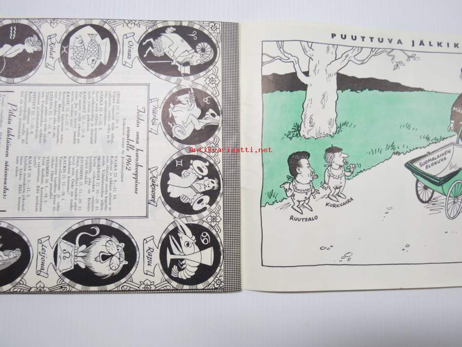| Saatavilla | 0 kpl (Huom. tuote on myyty! / Sold out!) | | Julkaisuvuosi | 1961 | | Sivuja | 32 | | Kunto | K3 | | Sidonta/painoasu | Nidottu (pehmeäk.) | | Kielet | Suomi |