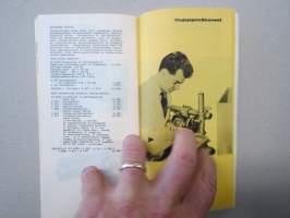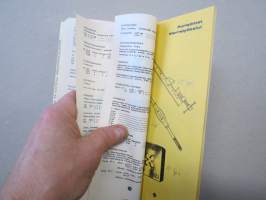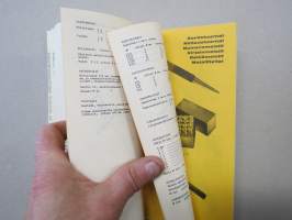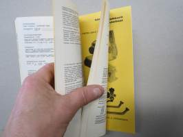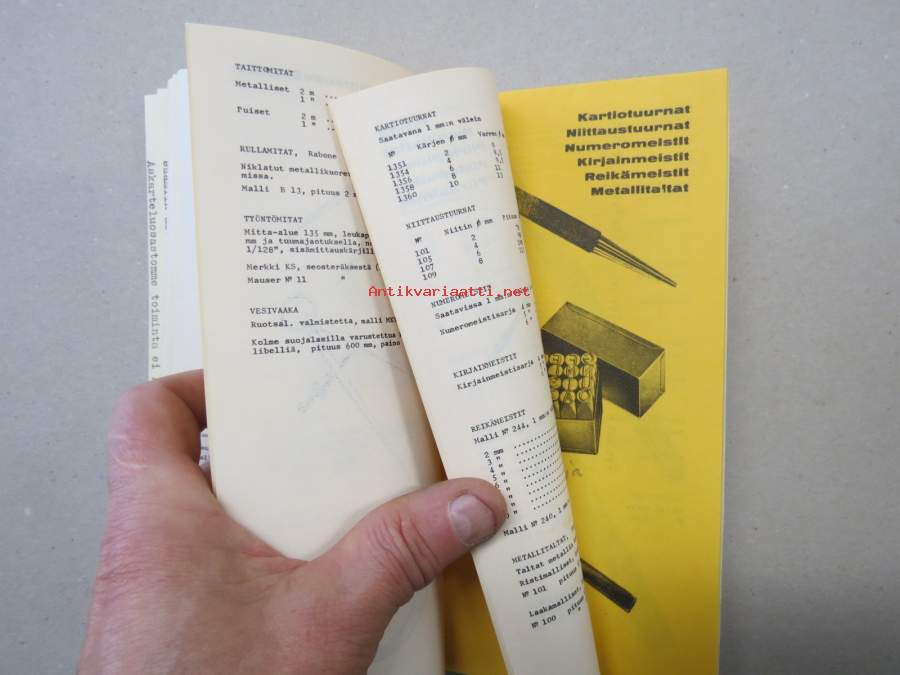 | Saatavilla | 0 kpl (Huom. tuote on myyty! / Sold out!) | | Julkaisuvuosi | 195? | | Sivuja | 63 | | Kunto | K3 | | Sidonta/painoasu | Nidottu (pehmeäk.) | | Kielet | Suomi |