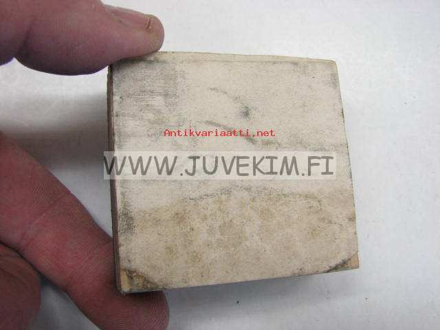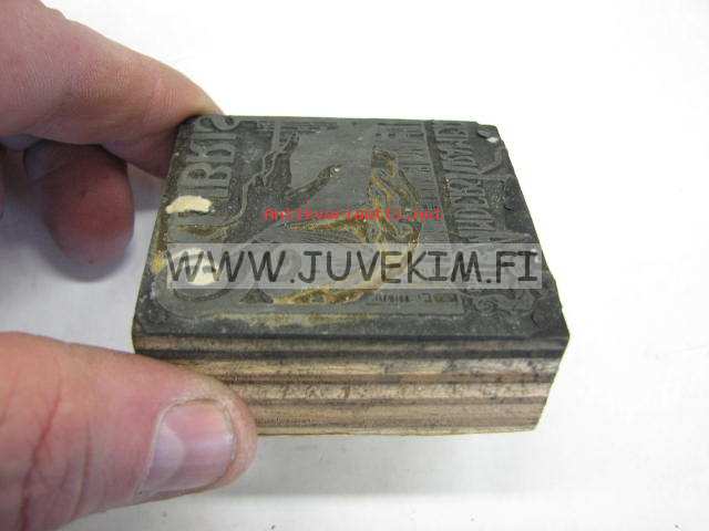 5 x 6 cm painolaatta. Laatta pakattu käytön jälkeen kirjapainossa kääreeseen ja jätetty odottamaan mahdollista lisätilausta.