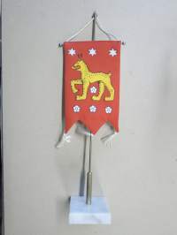 Suomussalmi -kangasmerkki / matkailumerkki / hihamerkki / badge -pohjaväri punainen