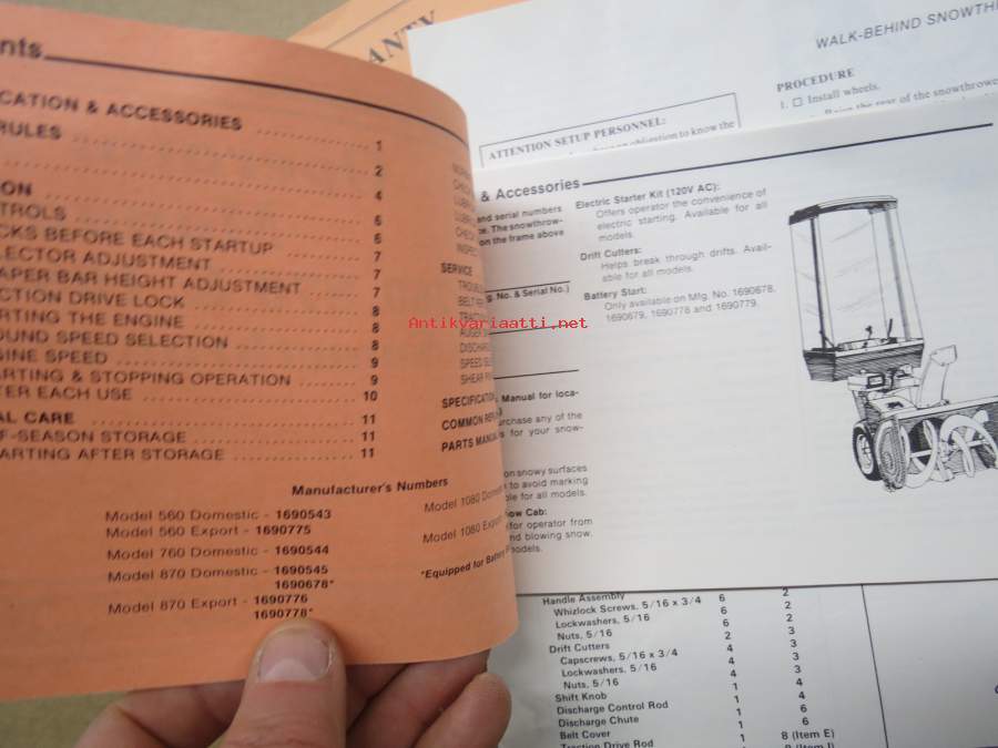 Simplicity 560, 760, 870, 1080 Snow Thrower Operator´s manual + Tecumseh HS40 & HS50 Snow King Snow Blower Engine operating Instructions -lumilinko käyttöohjekirja