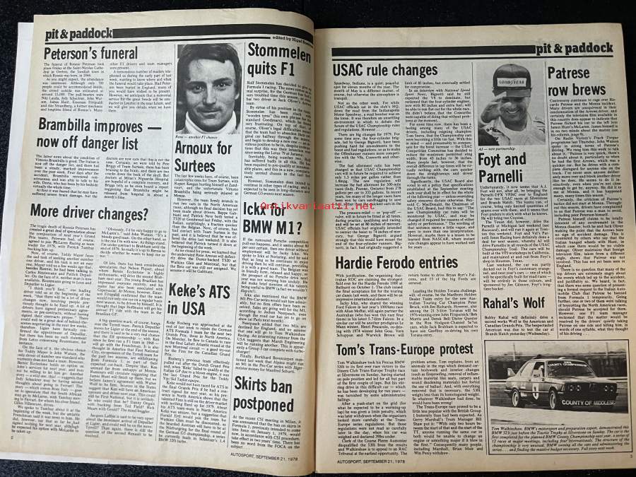 Autosport - Lehti 1978 nr 12 - BMW Tourist Trophy again, Mario Andretti at home, Leyland´s Manx Victory, Quebec WCR, Renault win in Jarama F3, ym.