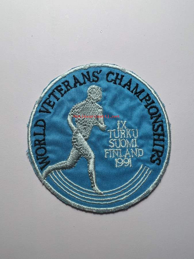 World veterans champioshirs -kangasmerkki / matkailumerkki / hihamerkki / badge -pohjaväri sininen