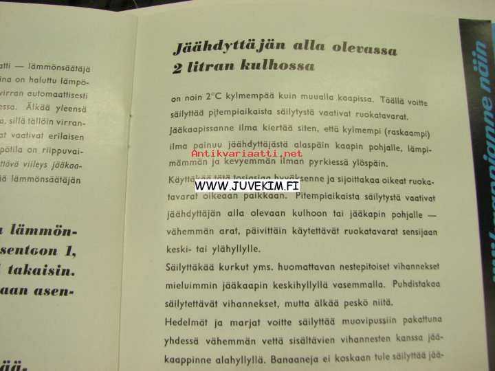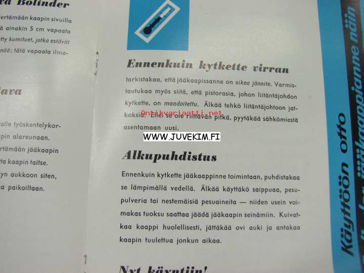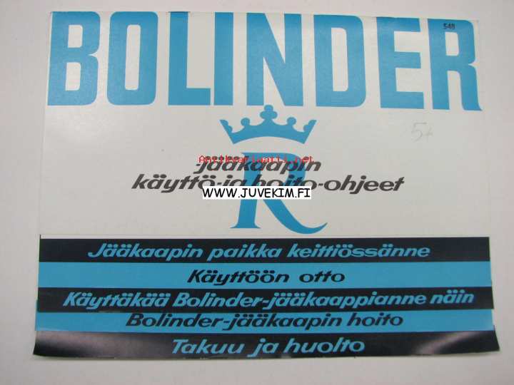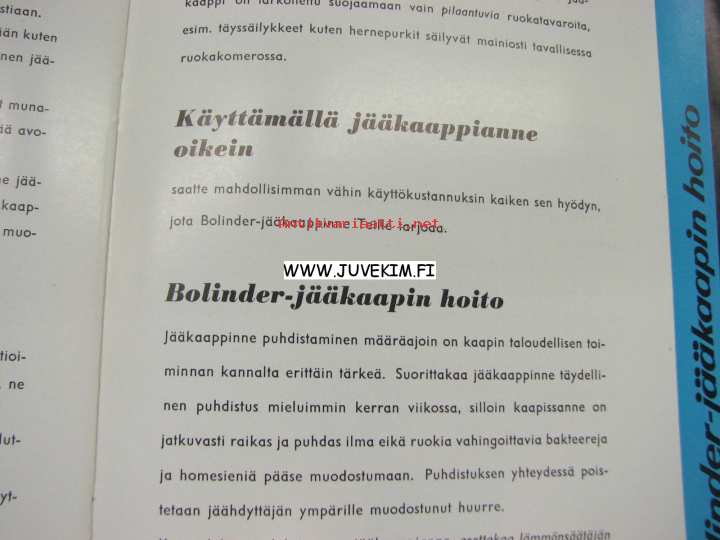 Bolinder -jääkaapin -käyttö- ja hoito-ohjeet