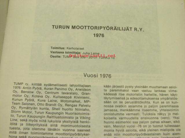 TUMP 1976 Turun Moottoripyöräilijät ry -vuosijulkaisu