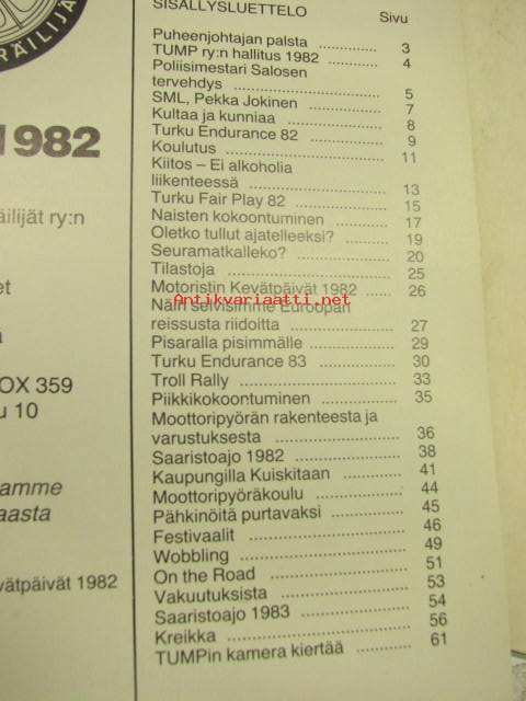 TUMP 1982 Turun Moottoripyöräilijät ry -vuosijulkaisu