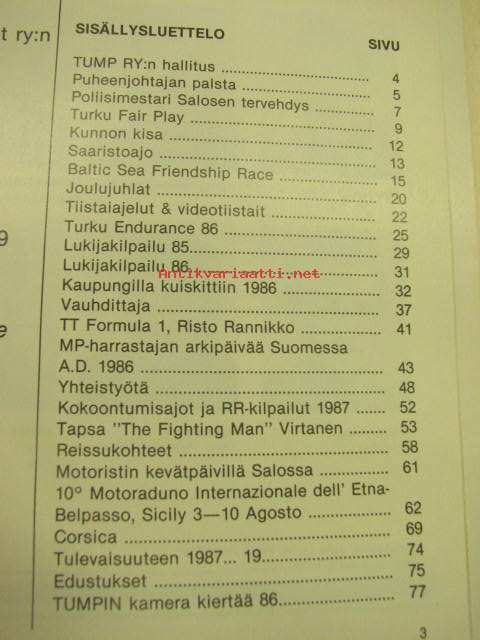 TUMP 1986 Turun Moottoripyöräilijät ry -vuosijulkaisu