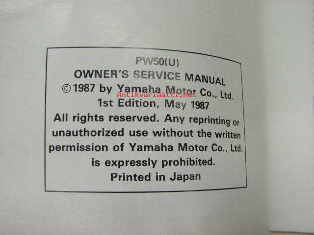 Yamaha PW50 (U) owner´s service manual -korjausohjekirja