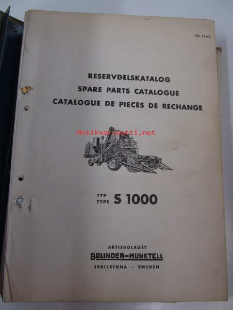 Bolinder-Munktell S 1000 parts catalogue -leikkuupuimuri, varaosaluettelo